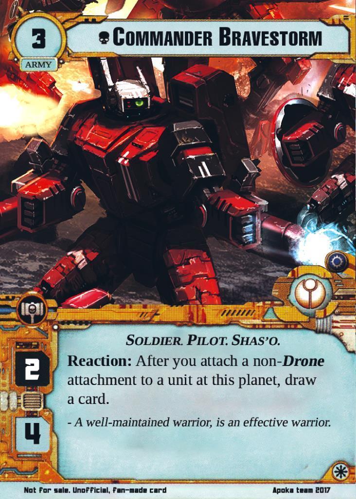Reaction: After you attach a non-Drone attachment to a unit at this planet, draw a card.