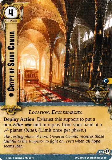 Deploy Action: Exhaust this support to put a non-Elite Space Marines unit into play from your hand at a tech planet (blue). (Limit once per phase.)