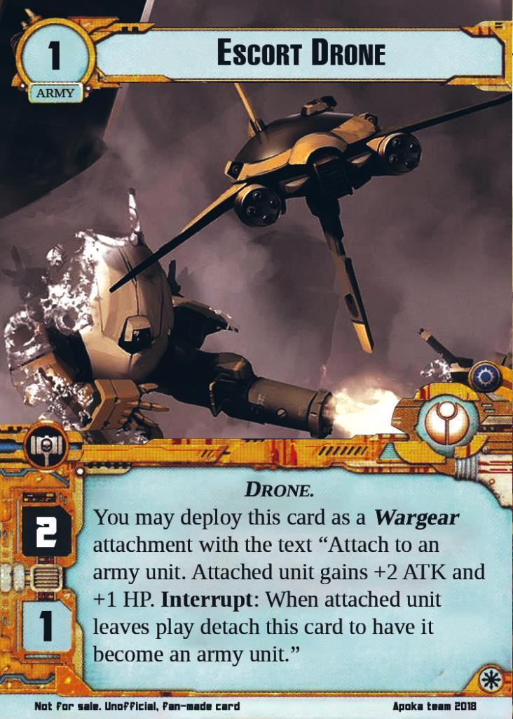 You may deploy this card as a Wargear attachment with the text "Attach to an army unit. Attached unit gains +2 ATK and +1 HP. Interrupt: When attached unit leaves play detach this card to have it become an army unit."