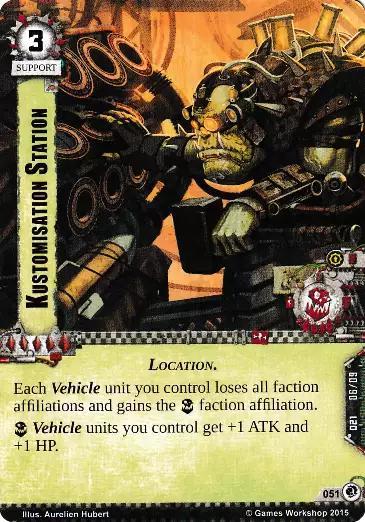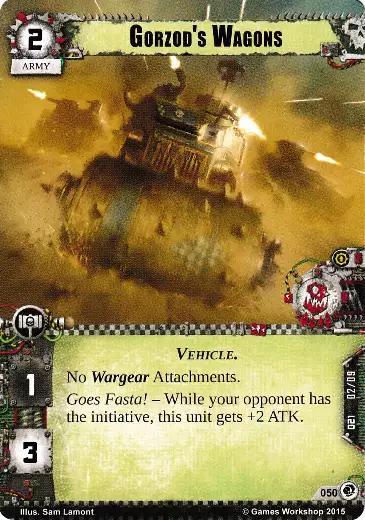 Taurox APC - A 1/1/2/2 that can move to battles. A very good unit, made far better if you draw Kustomisation Station. One of the staples of any good Gorzod deck. Strong synergy with Truck Wreck Launcha. 5/5.