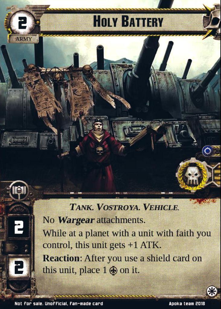 Reaction: After you use a shield card on this unit, place 1 faith on it.