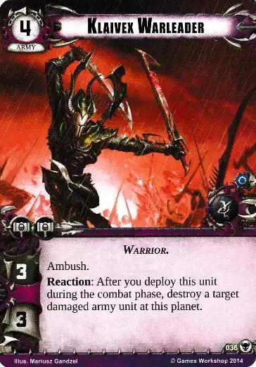 Reaction: After you deploy this unit during the combat phase, destroy a target damaged army unit at this planet.