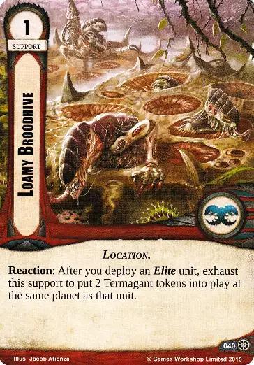 Reaction: After you deploy an Elite unit, exhaust this support to put 2 Termagant tokens into play at the same planet as that unit.