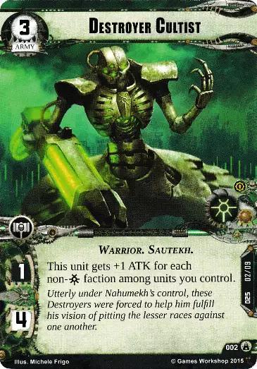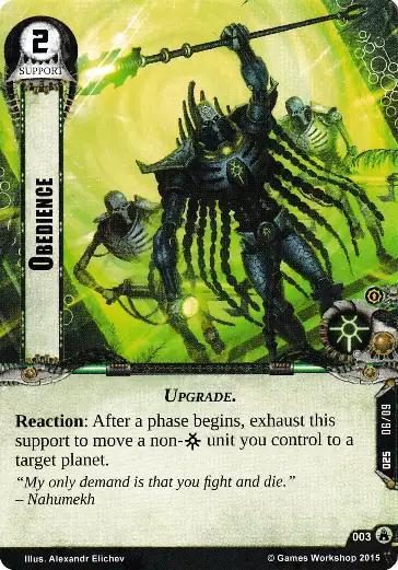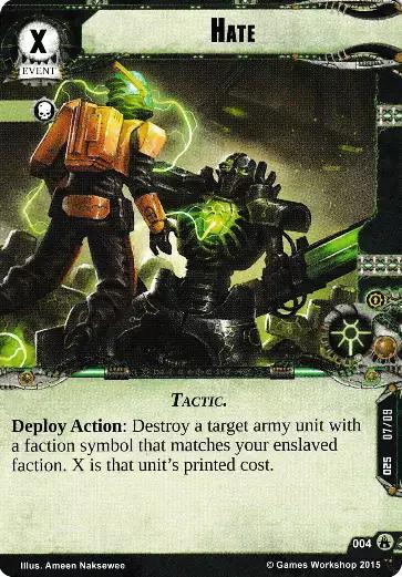 Reaction: After the combat phase begins, a target army unit at this planet gets -X HP until the end of the phase. X is the number of non-Necrons factions among units you control.