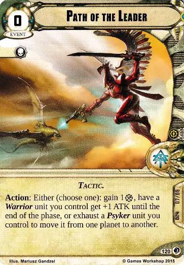 Action: Either (choose one): gain 1 resource, have a Warrior unit you control get +1 ATK until the end of the phase, or exhaust a Psyker unit you control to move it from one planet to another.