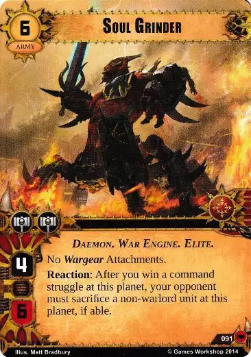 Reaction: After you win a command struggle at this planet, your opponent must sacrifice a non-warlord unit at the same planet, if able.