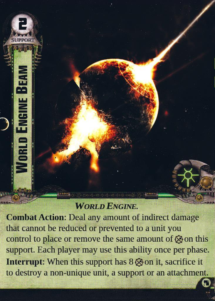 Combat Action: Deal any amount of indirect damage that can not be reduced or prevented to a unit you control to place or remove the same amount of resources on this support. Each player may use this ability once per phase.