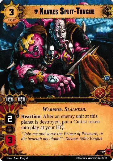 Reaction: After an enemy unit at this planet is destroyed, put a Cultist token into play at your HQ.