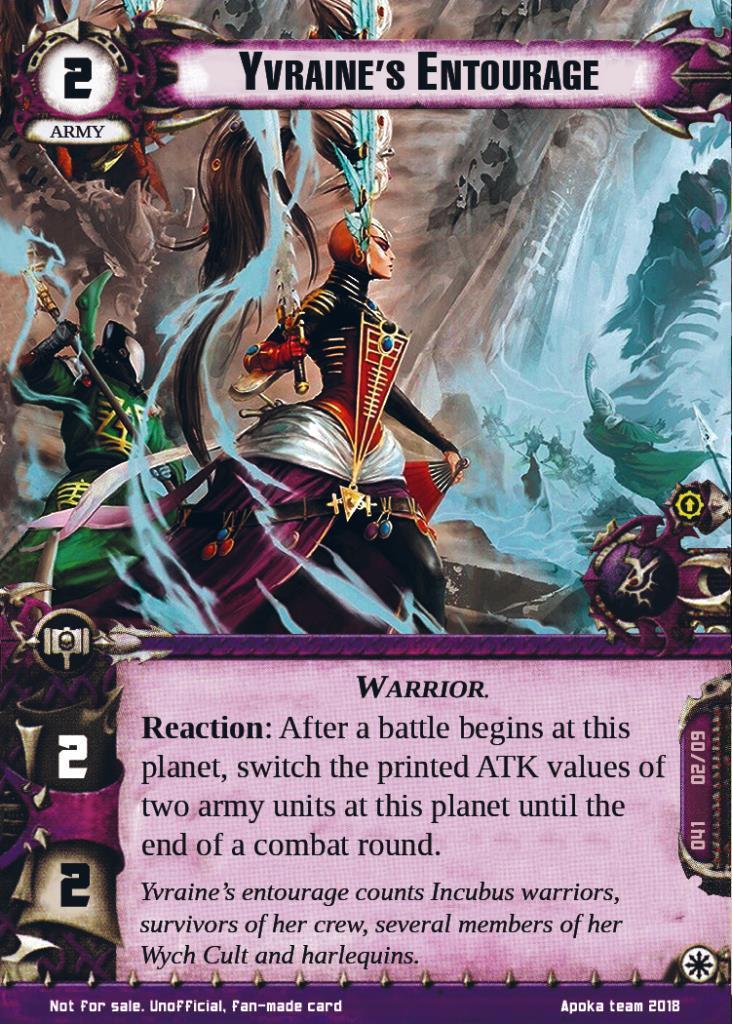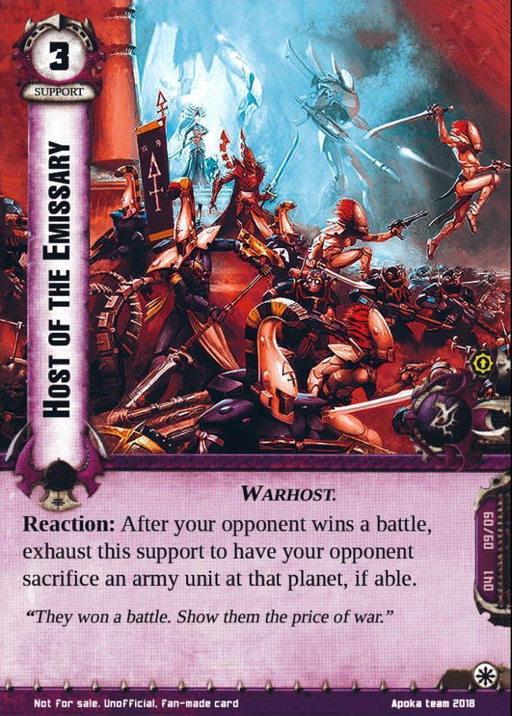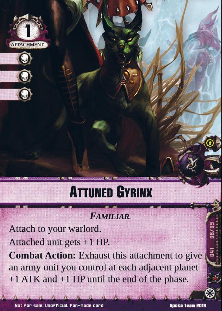 Reaction: After this unit commits to a planet, a non-Elite army unit at an adjacent planet gains +1 ATK and +1 HP. It is considered to be a warlord while checking for a battle at that planet this round.