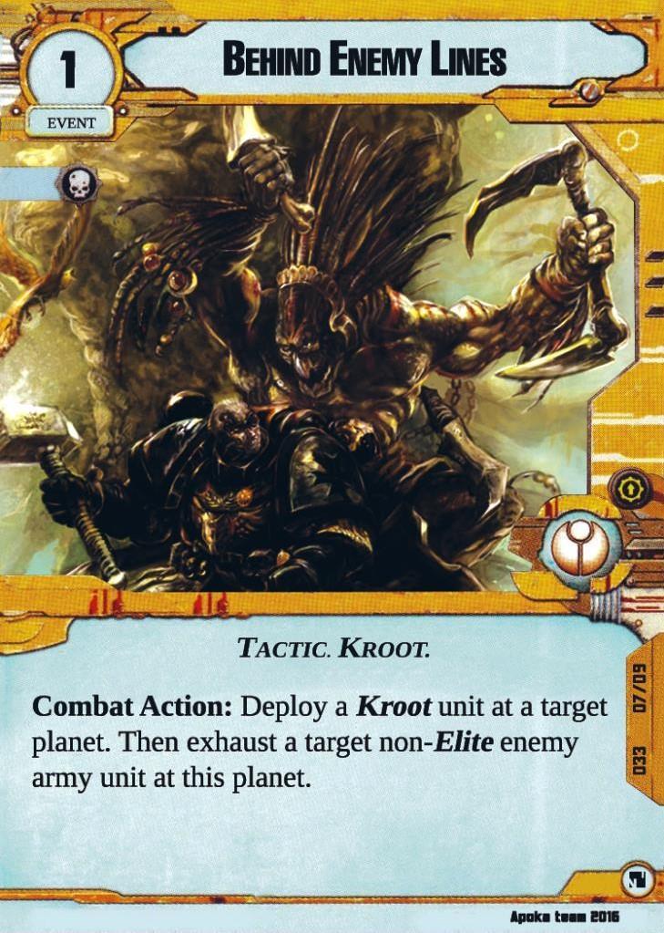 Combat Action: Deploy a Kroot unit at a target planet. Then exhaust a target non-Elite enemy army unit at this planet.