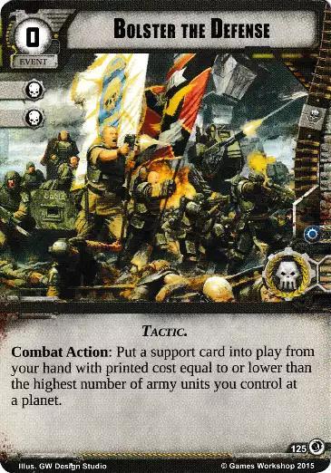 Combat Action: Put a support card into play from your hand with printed cost equal to or lower than the highest number of army unit you control at a planet.