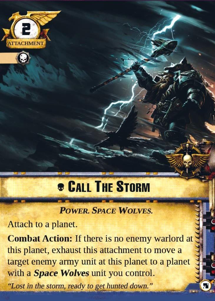 Combat Action: If there is no enemy warlord at this planet, exhaust this attachment to move a target enemy army unit at this planet to a planet with a Space Wolves unit you control.