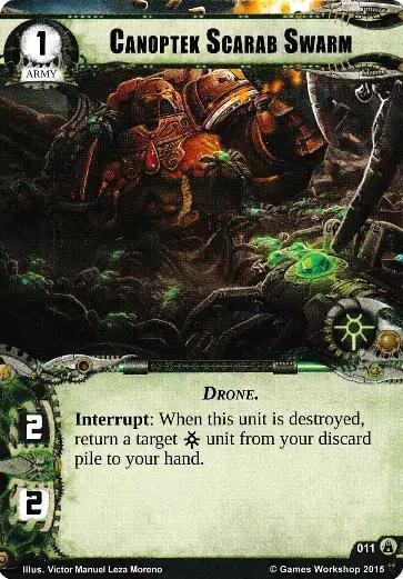 Interrupt: When this unit is destroyed, return a target Necrons unit from your discard pile to your hand.