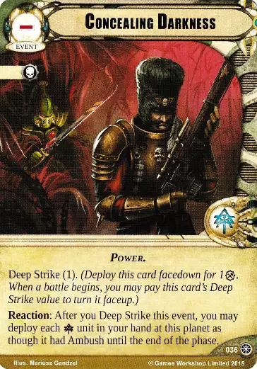 Reaction: After you Deep Strike this event, you may deploy each unit in your hand at this planet as though it had Ambush until the end of the phase.