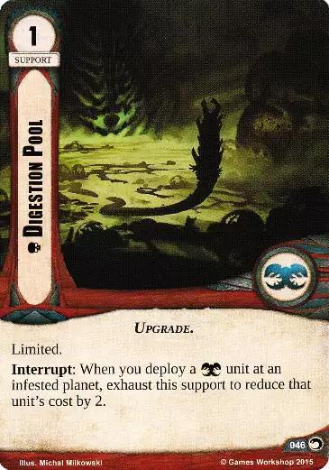 Interrupt: When you deploy a Tyranids unit at an infested planet, exhaust this support to reduce the unit's cost by 2.