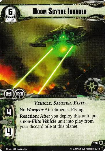Reaction: After you deploy this unit, put a non-Elite Vehicle unit into play from your discard pile at this planet.