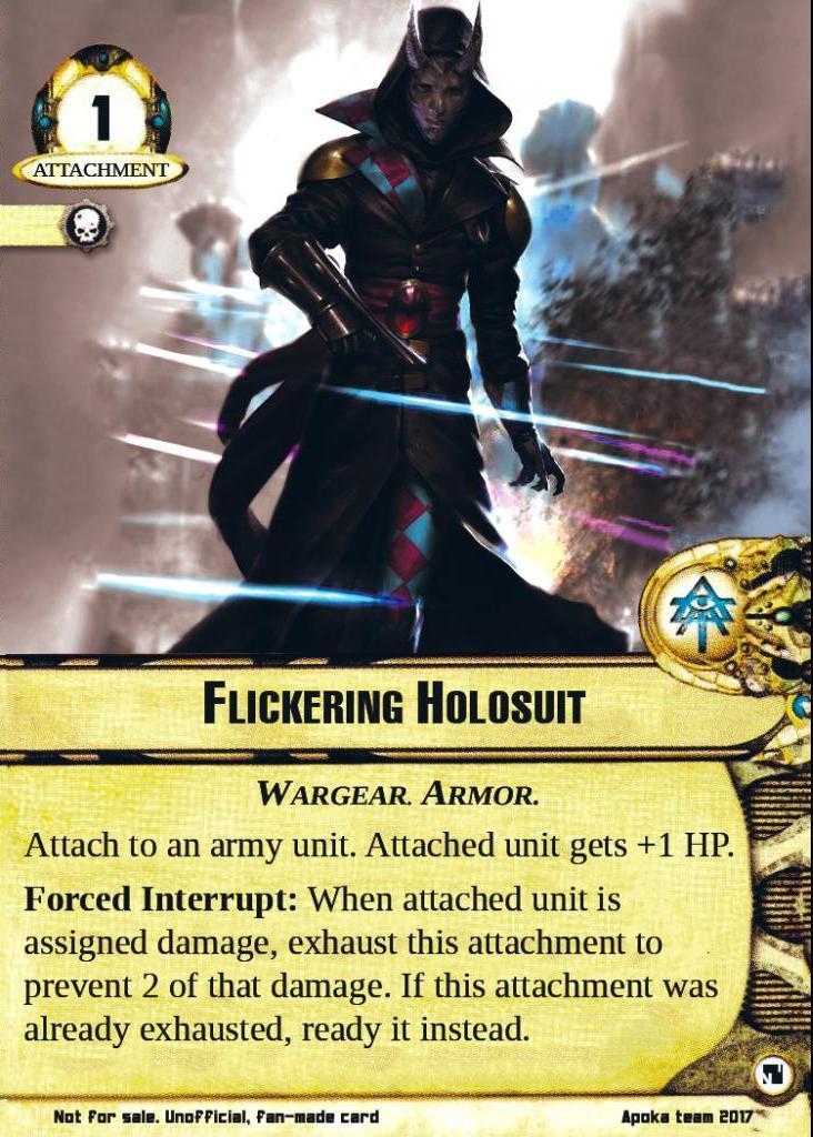 Forced Interrupt: When attaced unit is assigned damage, exhaust this attachment to prevent 2 of that damage. If this attachment was already exhausted, ready it instead.
