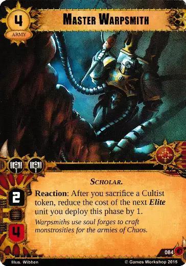 Reaction: After you sacrifice a Cultist token, reduce the cost of the next Elite unit you deploy this phase by 1.