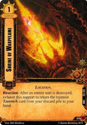 Reaction: After an enemy unit is destroyed, exhaust this support to return the topmost Tzeentch card from your discard pile to your hand.