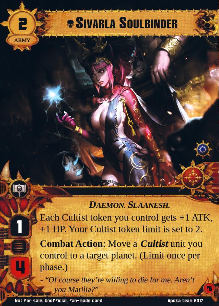 Combat Action: Move a Cultist unit you control to a target planet. (Limit once per phase.)