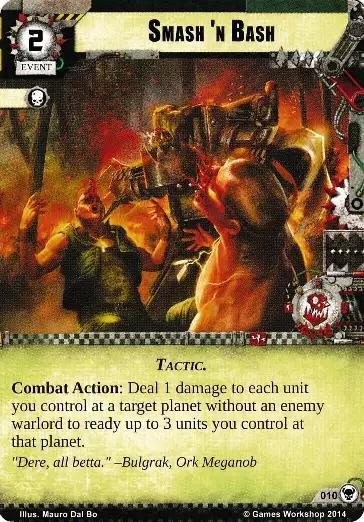 Combat Action: Deal 1 damage to each unit you control at a target planet without an enemy warlord to ready up to 3 units you control at that planet.