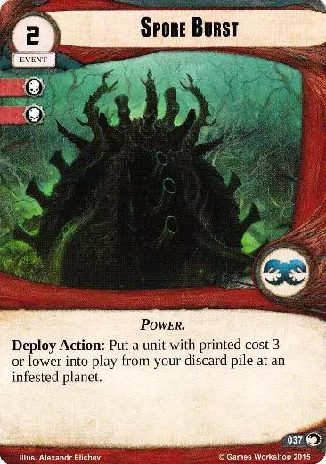Deploy Action: Put a unit with printed cost 3 or lower into play from your discard pile at an infested planet.