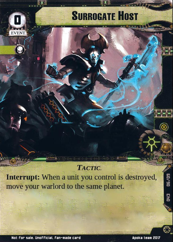 Interrupt: When a unit you control is destroyed, move your warlord to the same planet.