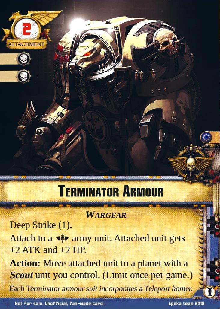 Attach to a Space Marines army unit. Attached unit gets +2 ATK and +2 HP.