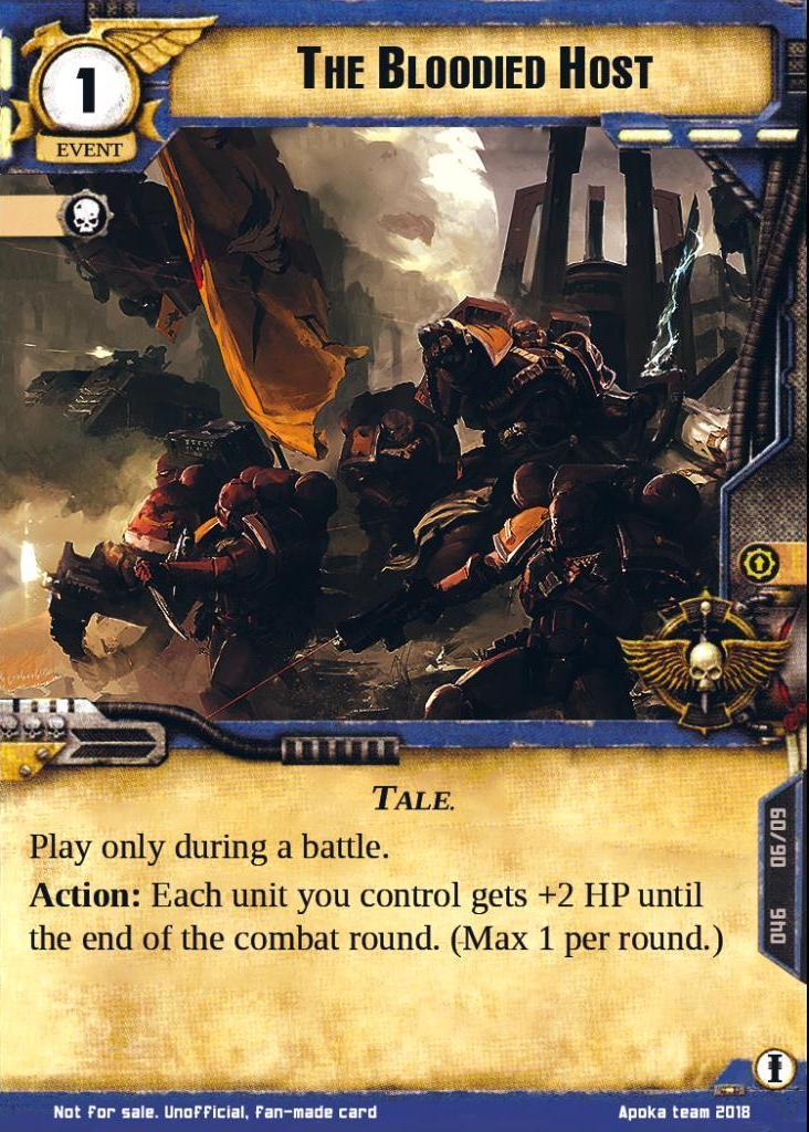 Action: Each unit you control gets +2 HP until the end of the combat round. (Max 1 per round.)