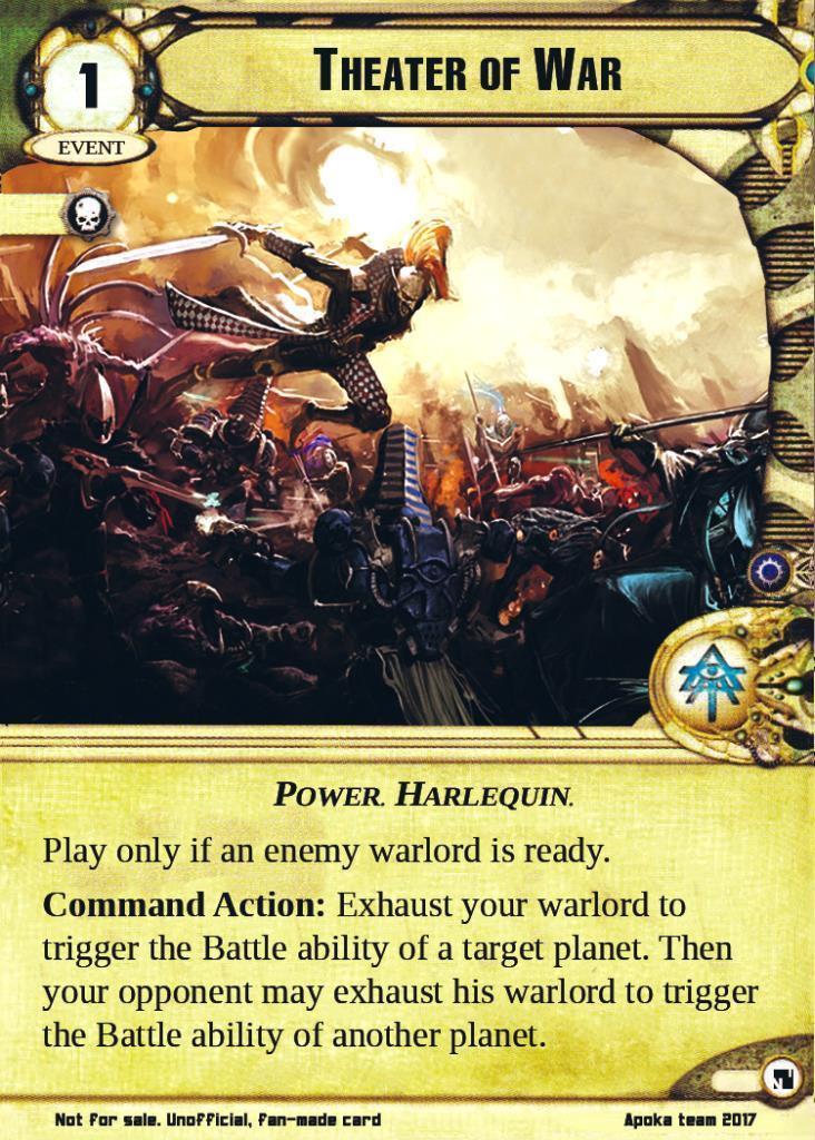 Command Action: Exhaust your warlord to trigger the Battle ability of a target planet. Then your opponent may exhaust his warlord to trigger the Battle ability of another planet.