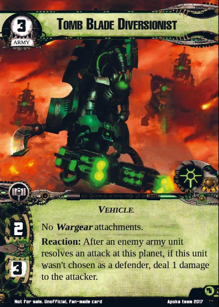 Reaction: After an enemy army unit resolves an attack at this planet, if this unit wasn't chosen as a defender, deal 1 damage to the attacker.