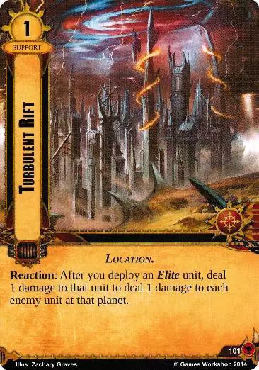 Reaction: After you deploy an Elite unit, deal 1 damage to that unit to deal 1 damage to each enemy unit at that planet.