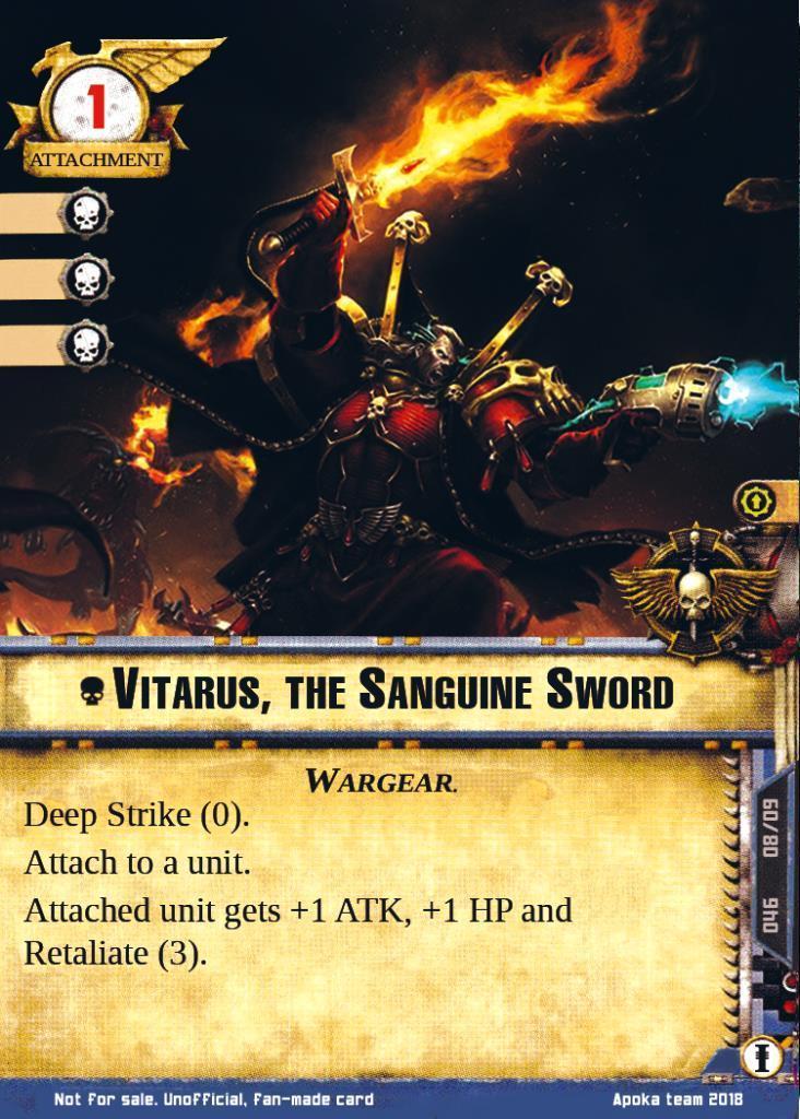 Attached unit gets +1 ATK, +1 HP, and Retaliate (3).