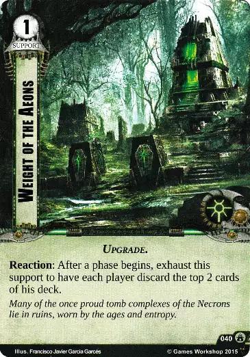 Reaction: After a phase begins, exhaust this support to have each player discard the top 2 cards of his deck.